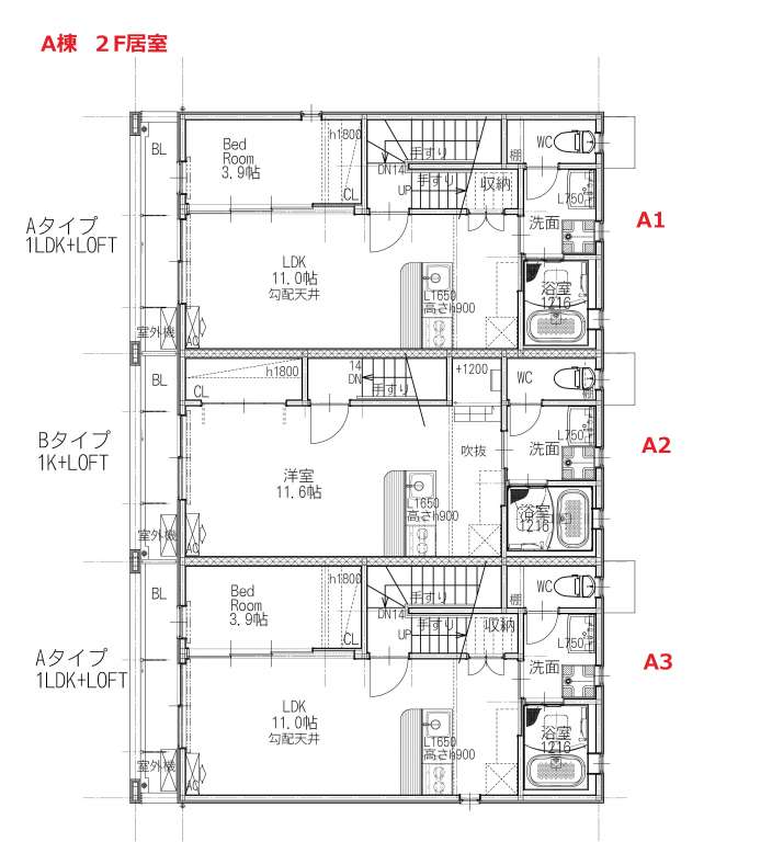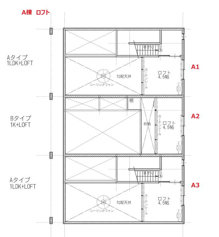 (1Kロフト付き1戸/1LDK2戸/1LDKロフト付き2戸)