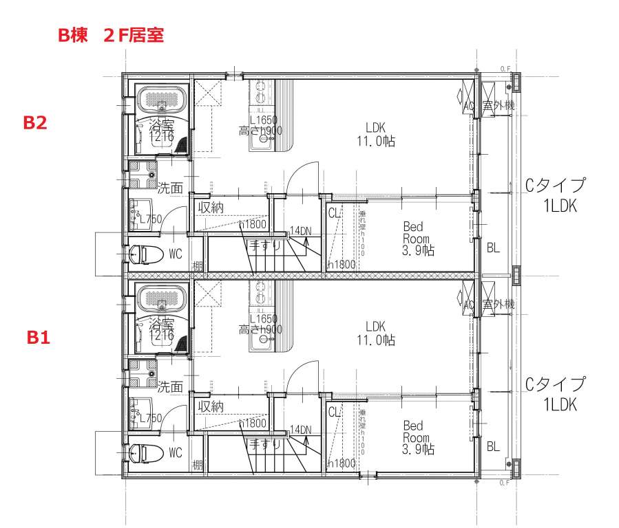 | B2 | 1LDK | LDK11帖+洋室3.9帖 | ガレージ幅4.4m×奥行7.9m(最大部分) | ー | リモコン式電動シャッター幅3.0m×高さ2.2m | 入居中 |