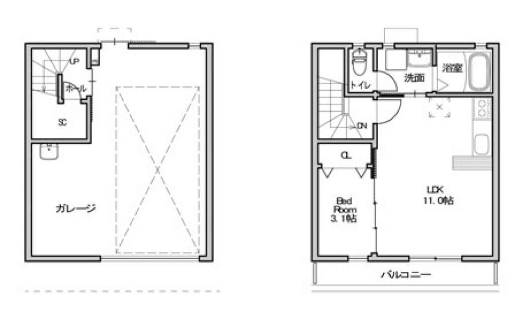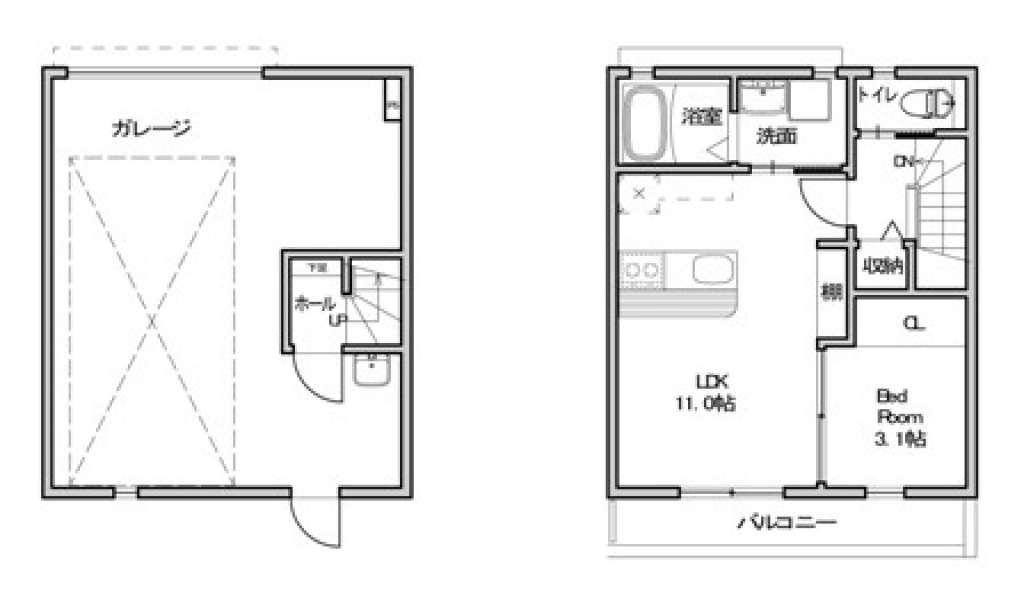 | 広さ | LDK11帖+Bedroom3.1帖 |