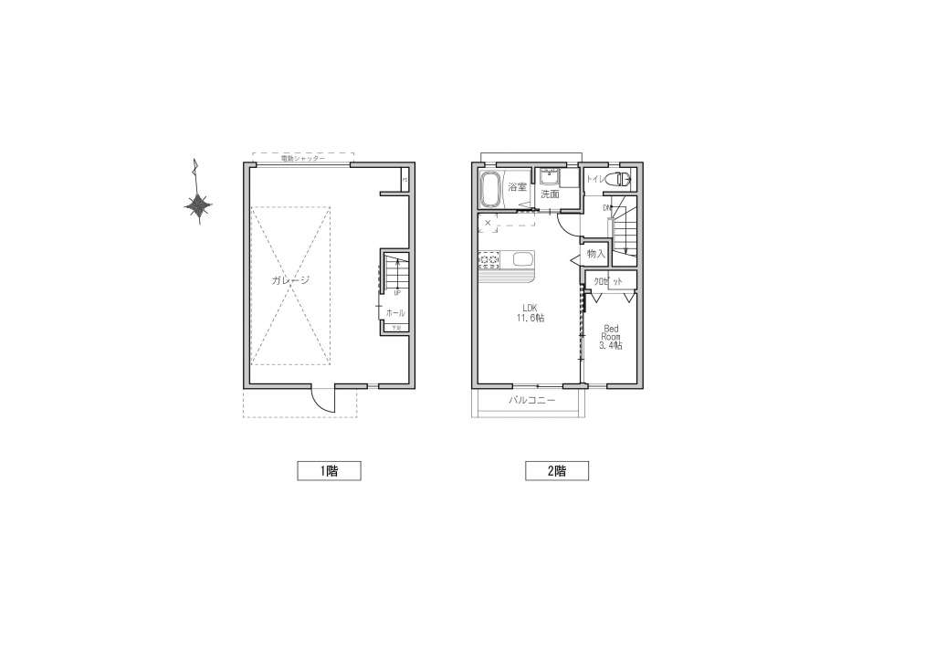 | B-2 | ロフト付1K | LDK10.6帖+ロフト4.4帖 | ガレージ幅4.8m×奥行5.7m(最大部分 | ー | シャッター幅3.2m×高さ2.2m | 入居中 | ||