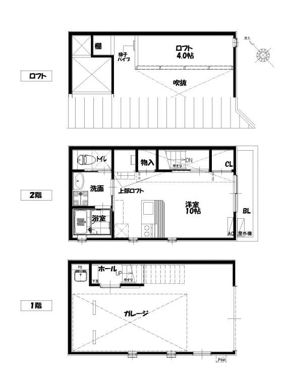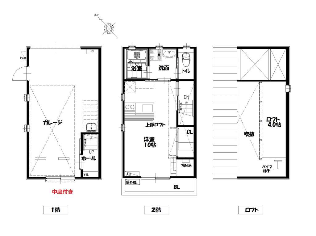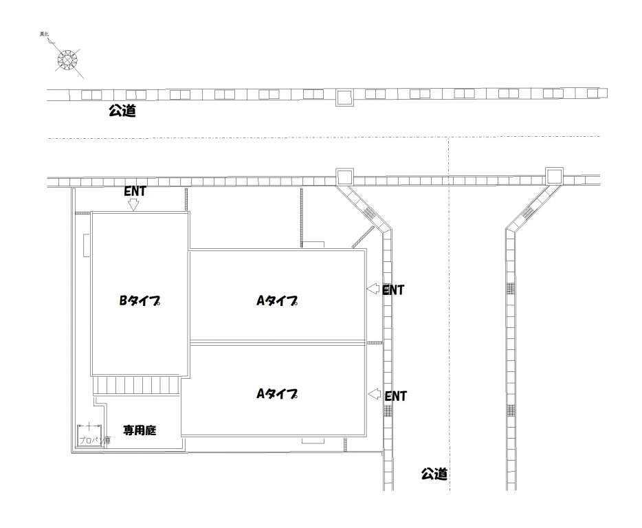 | B | 1Kロフト付き(Aタイプ) | LDK10.0帖+ロフト4.0帖 | ガレージ幅3.9m×奥行7.1m(最大部分) | ー | シャッター幅2.9m×高さ2.1m | 入居中 | ||