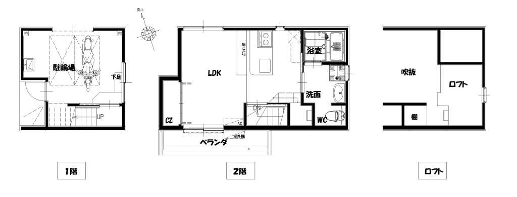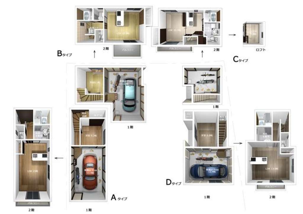 ■1LDK 3戸+1Kロフト付 1戸(バイクガレージタイプ)