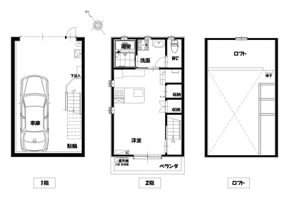 | 3 | 1K | LDK10.3帖+ロフト4.6帖 | ガレージ幅4.2m×奥行7.0m | ー | シャッター幅3.1m×高さ2.2m | 入居中 |