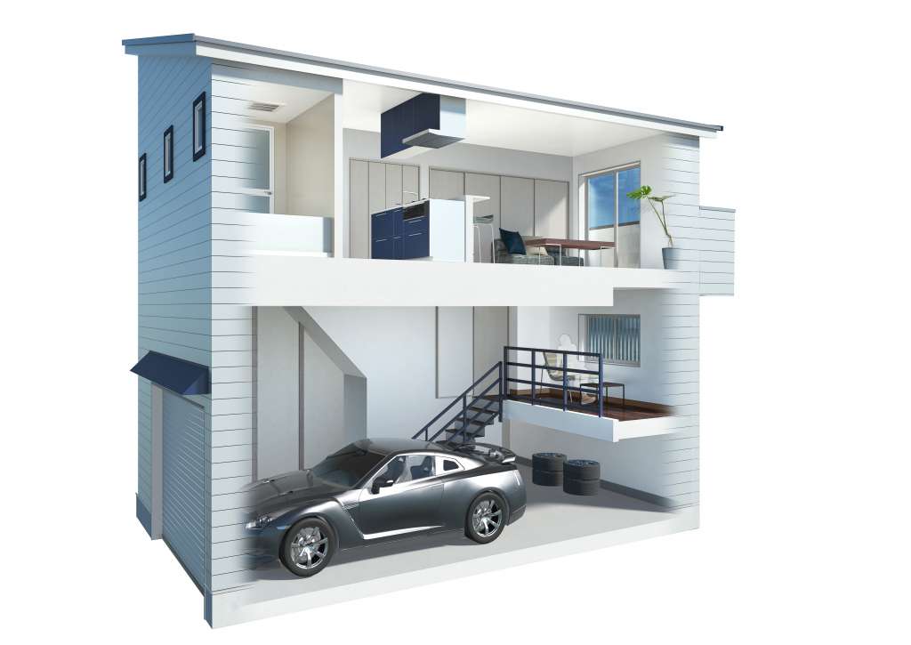 ガレージライフとリゾートライフを満喫!ガレージ内にオープンスキップフロア付き