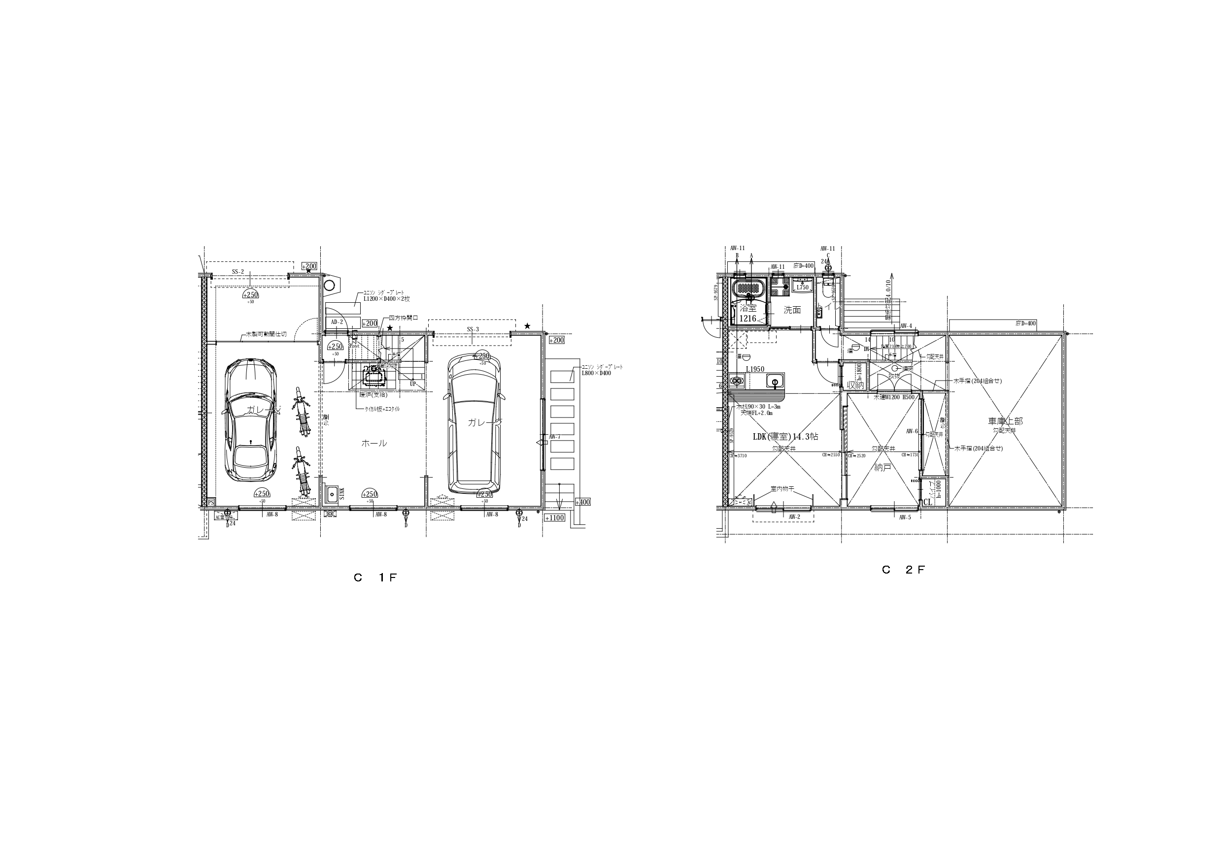 | C | 1LDK+フリースペース付 | LDK13.0帖+洋室4.2帖+フリースペース(ガレージ内)4.0帖 | ガレージ幅5.0m×奥行6.2m(最大部分) | ー | シャッター幅3.4m×高さ2.5m | 入居中 |