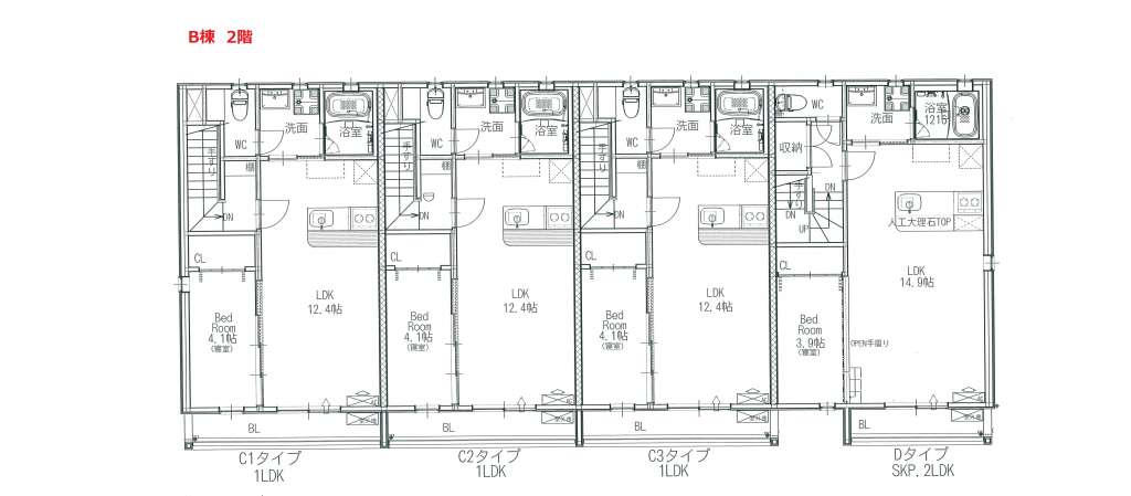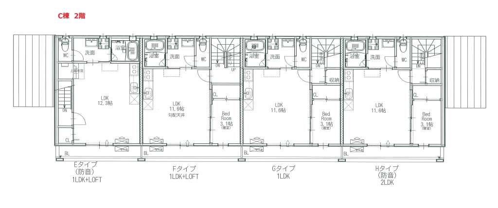 | 間取り | C2タイプ:1LDK(専用庭付き) |