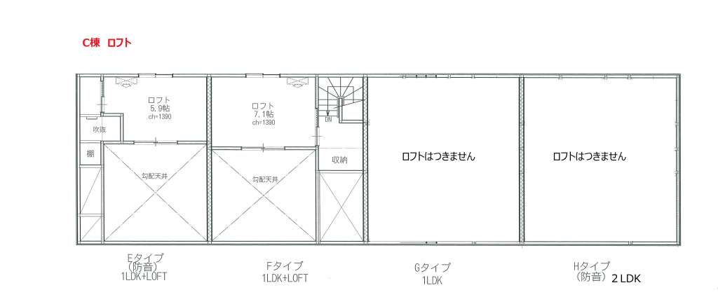 | 間取り | Eタイプ:1LDKロフト付き(防音室・専用庭付き) |