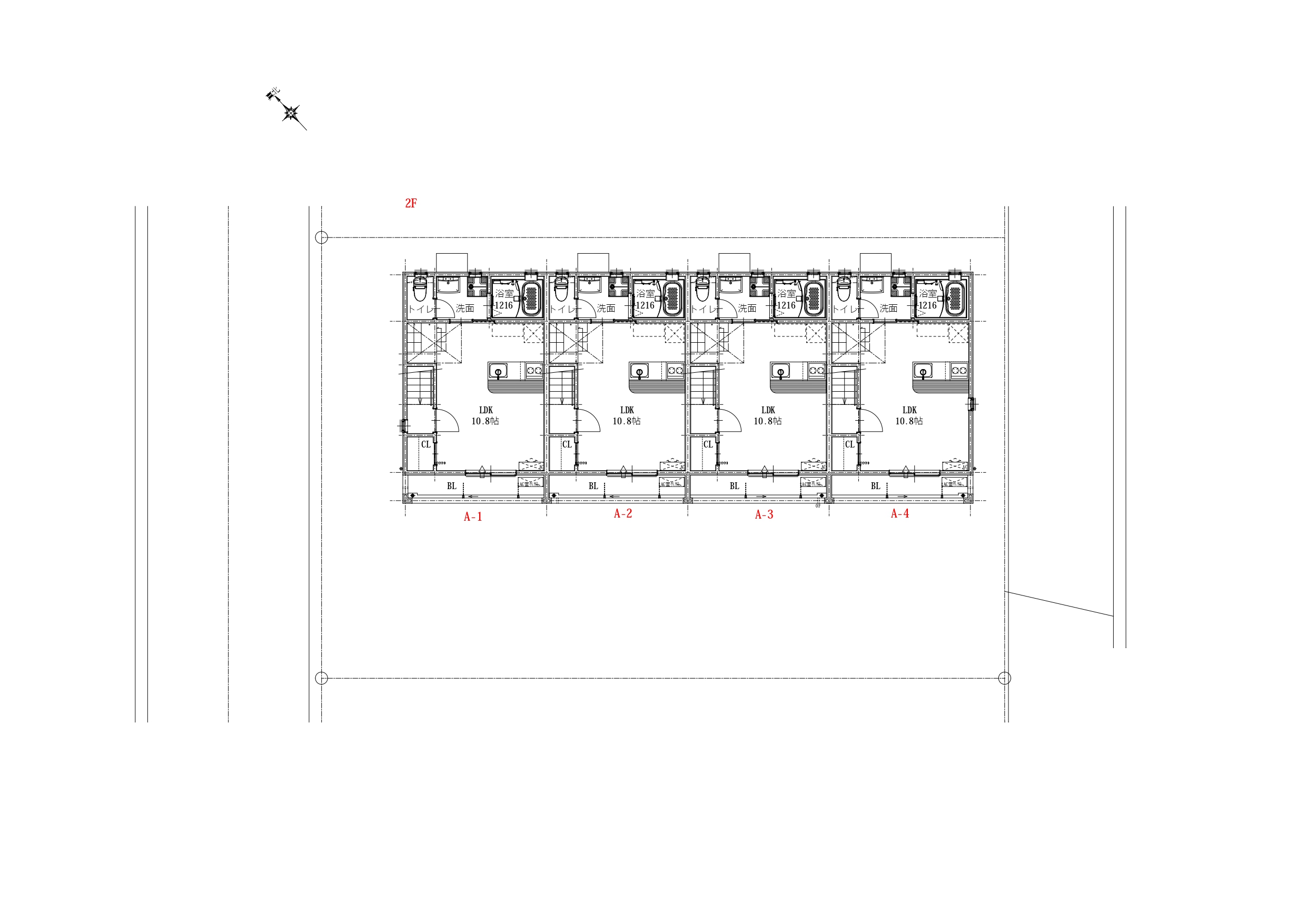 | A2 | ロフト付1K | LDK10.8帖+ロフト6.5帖 | ガレージ幅4.4m×奥行6.3m(最大部分) | ー | リモコン式電動シャッター幅3.0m×高さ2.2m | 入居中 | ||