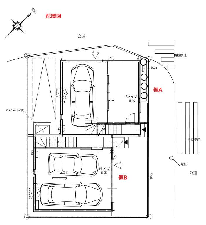 〇仮B(1LDK):ガレージに並列2台駐車可能!複数台お持ちの方にオススメ。