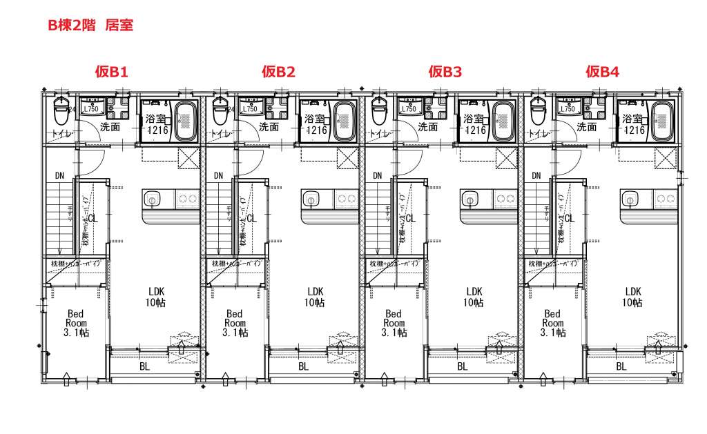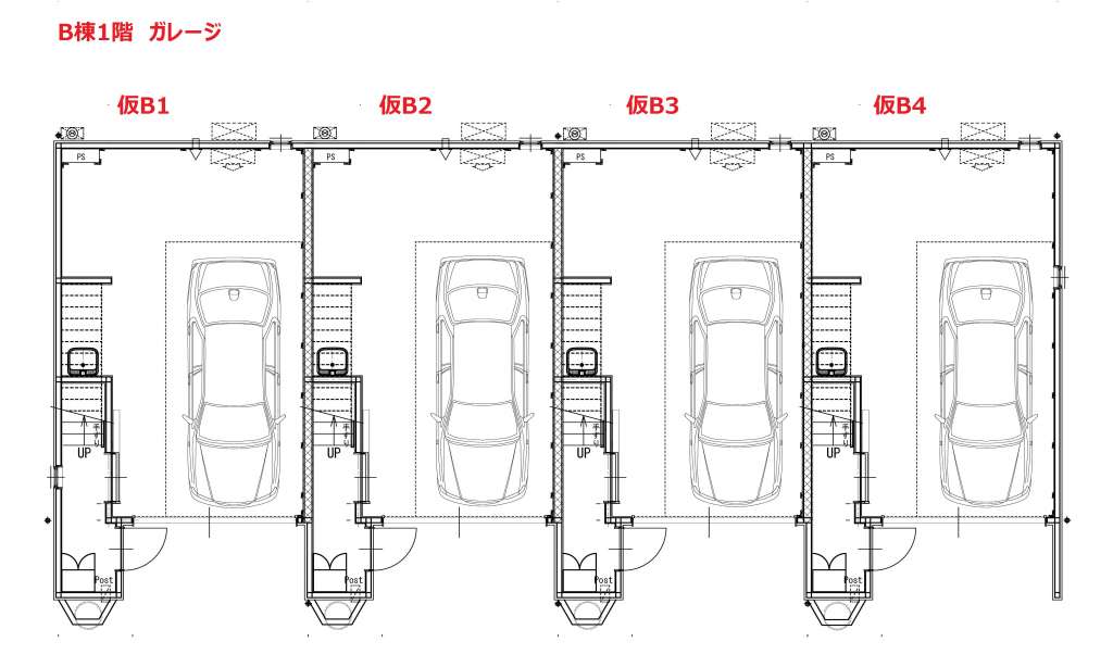 | 2棟-101 | LDK10帖+BedRoom3.1帖 | ガレージ幅4.5m×奥行6.8m(最大部分) | ー | リモコン式電動シャッター幅2.8m×高さ2.2m | 入居中 | |||