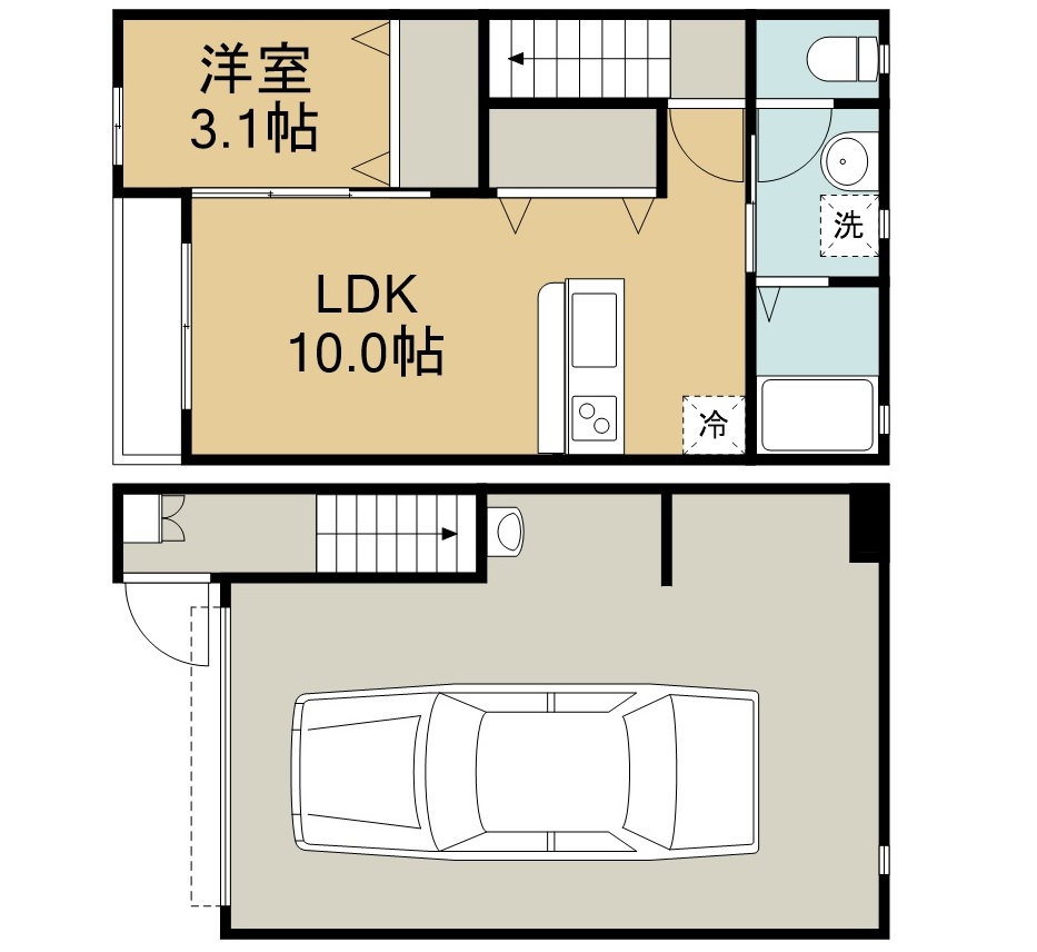 | 広さ | LDK10帖+BedRoom3.1帖 |