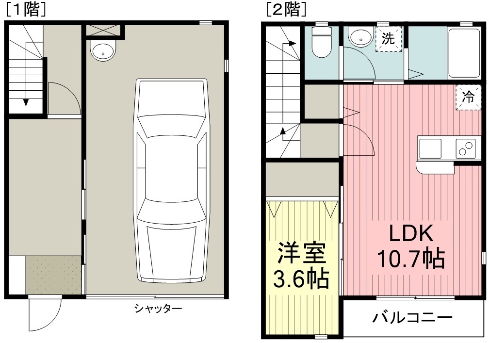 | C | 1LDK | 67.33㎡(ガレージ専有面積を含む) | ガレージ幅3.45m×奥行6.8m | ー | シャッター幅2.8m×高さ2.2m | 入居中 | ||