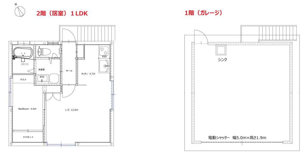 | 1 | 1LDK | LDK+BedRoom | ガレージ幅5.8m×奥行5.8m(最大部分) | ー | シャッター幅5.0m×高さ1.9m | 入居中 |