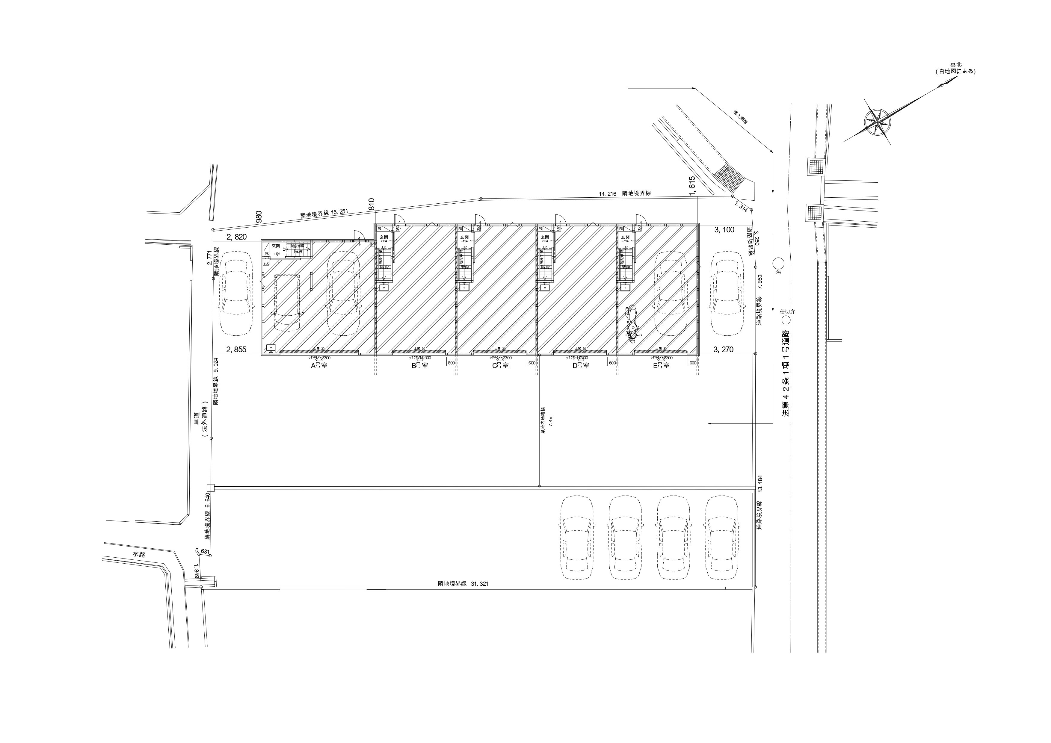 | E | 1LDK(LDK+1部屋) | LDK:9.8帖 洋室:2.8帖 | ガレージ(最大部分) 幅 4.5m × 奥行 7.3m | ー | シャッター 幅 2.9m × 高さ 2.3m | 入居中 |