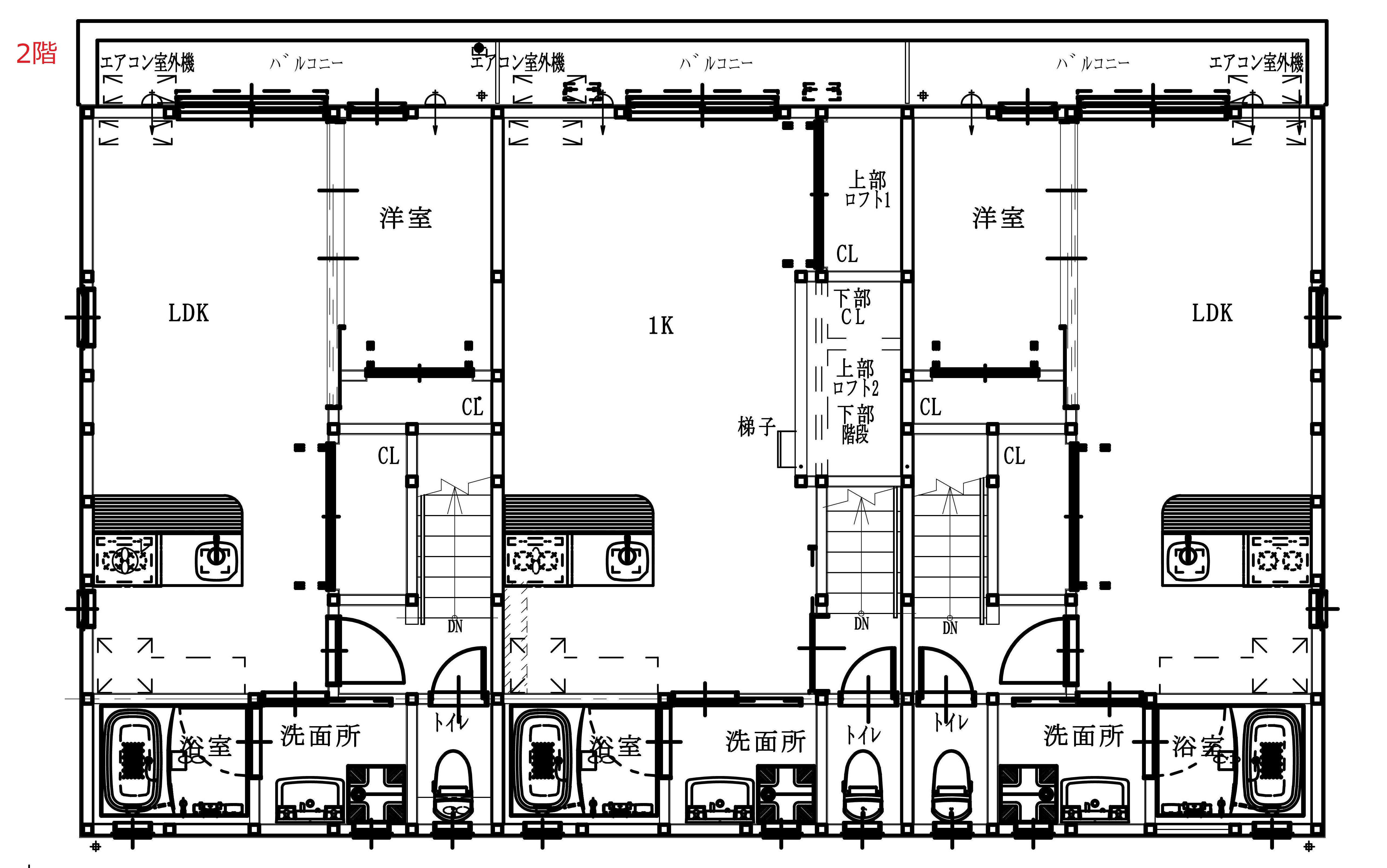 | B | 1Rロフト付 | ガレージ(最大部分)幅 3.6m × 奥行 6.9m | ー | シャッター 幅 2.7m × 高さ 2.2m | 入居中 | |||
