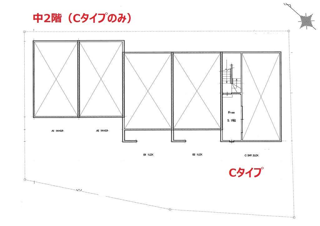 | B | ロフト付1K | LDK10.2帖+ロフト4.7帖 | ガレージ幅4.0m×奥行6.9m(最大部分) | ー | シャッター幅2.6m×高さ2.2m | 入居中 | ||