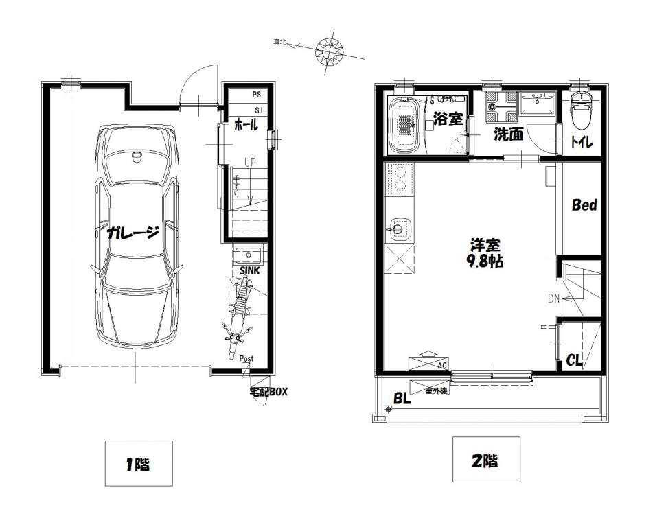 | 駐車場 | ガレージ内1台 ガレージ外1台ガレージ幅4.55m×奥行5.8m(いずれも最大部分) |